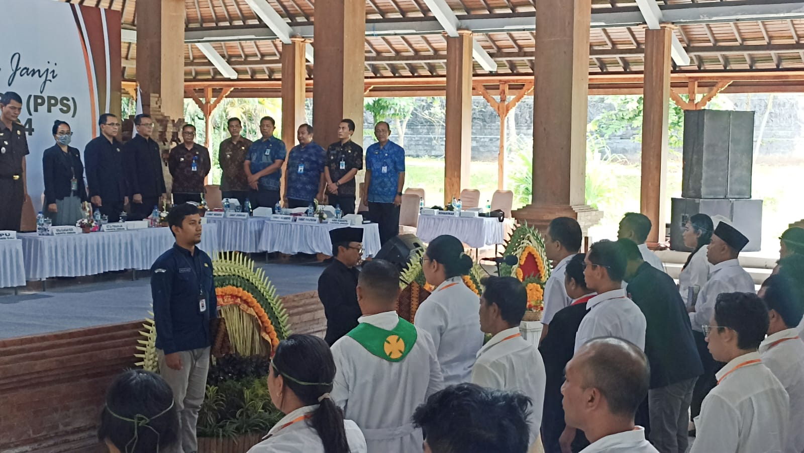 JEMBRANA, MediaBaliNews – Sebanyak 153 anggota Panitia Pemungutan Suara (PPS) se- Kabupaten Jembrana dilantik dan diambil sumpahnya oleh Ketua KPU Jembrana I Ketut Gde Tangkas Sudiantara bertempat di Wantilan Pura Jagatnatha, Kabupaten Jembrana, Selasa (24/1/2023).