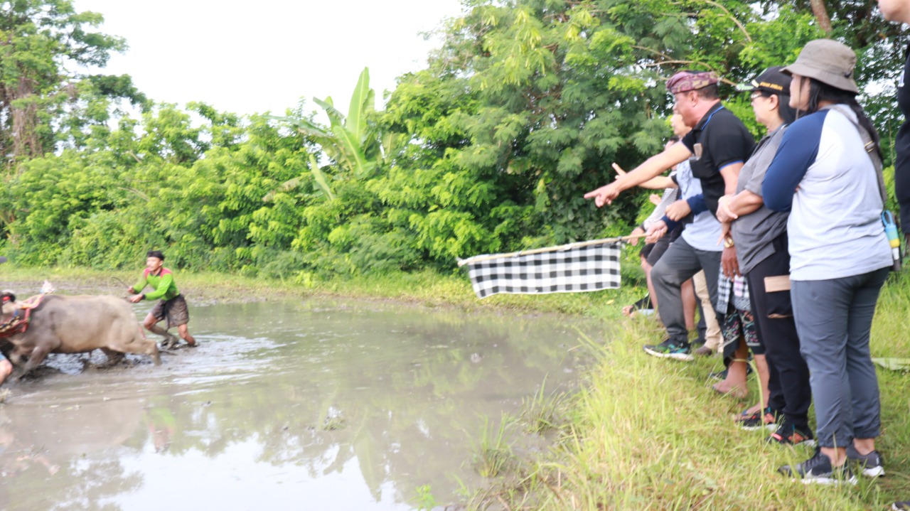 JEMBRANA, MediaBaliNews – Sebanyak 40 pasang kerbau berlaga pada perlombaan Mekepung Lampit 2022 di banjar Peh desa Kaliakah. Para peserta pegiat pekepungan yang terdiri dari 34 pasang regu barat dan 6 pasang regu timur tersebut dilepas Wakil Bupati Jembrana I Gede Ngurah Patriana Krisna, Minggu (13/11).