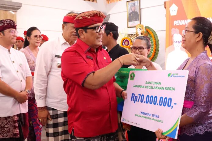 “Penyelenggaraan program ini adalah bentuk kehadiran negara dalam menjamin perlindungan sosial bagi masyarakat khususnya pekerja rentan,” tegas Bupati I Komang Gede Sanjaya saat memberikan sambutan resmi.