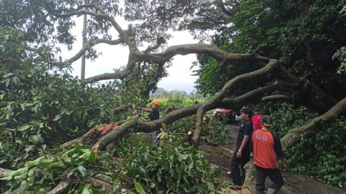 Tim TRC regu 4 BPBD Tabanan langsung diterjunkan ke lokasi untuk melakukan pembersihan pohon.