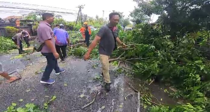 JEMBRANA, MediaBaliNews – Peristiwa angin kencang kembali terjadi di Kabupaten Jembrana, akibatnya pohon perindang tumbang hingga sempat menganggu arus lalulintas di Jalan Raya Denpasar-Gilimanuk tepatnya diwilayah Kelurahan Tegalcangkring, Kecamatan Mendoyo, Jembrana, Sabtu (1/2/2025).