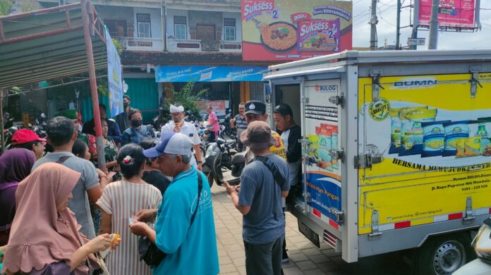 JEMBRANA, MediaBaliNews – Operasi pasar kembali di gelar Dinas Koperasi Perindustrian dan Perdagangan (Koperindag) Jembrana bersama Perusahaan Umum (Perum) Bulog Kanwil Bali di halaman parkir pasar Melaya, Senin (20/2) dengan menerapkan sistem pembelian paket per KTP sebesar Rp.100 ribu.