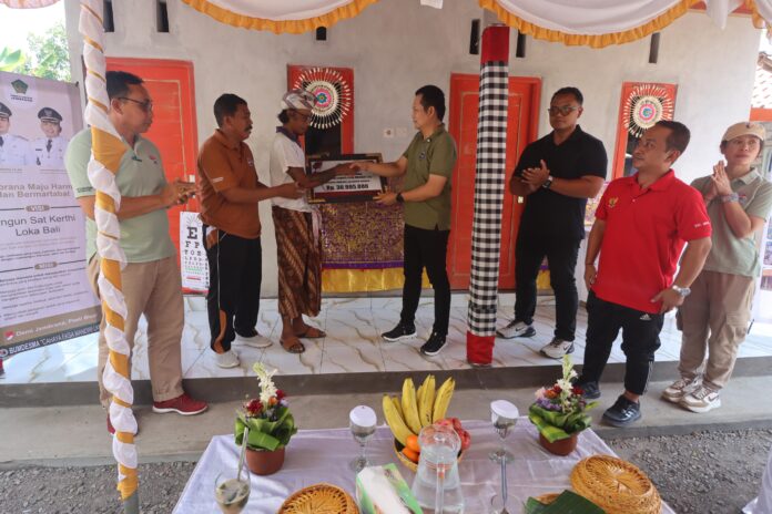 Penyerahan bantuan secara simbolis dilakukan di rumah milik I Made Dwi Darmayasa di Br. Anyar Kaja, Desa Penyaringan.