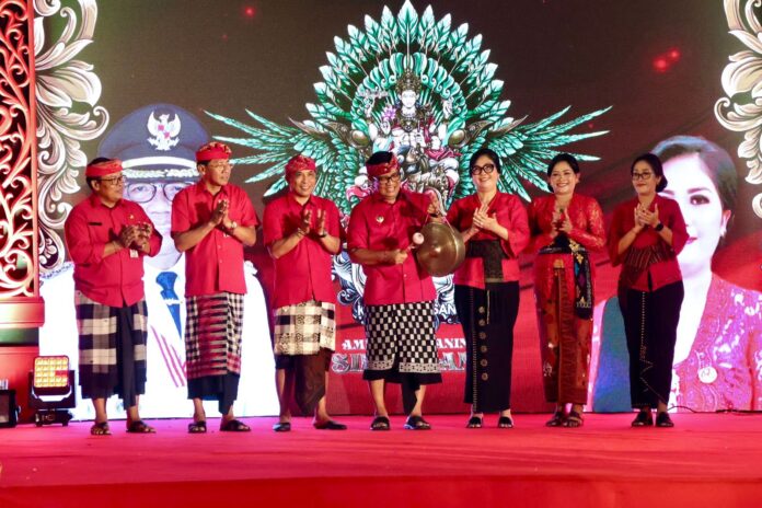 TABANAN, MediaBaliNews – Bupati Tabanan, Dr. I Komang Gede Sanjaya, S.E., M.M., bersama istri, Ny. Rai Wahyuni Sanjaya yang juga selaku Ketua TP PKK Kabupaten Tabanan, kembali menunjukkan komitmen dan dukungannya yang kuat terhadap pengembangan seni dan budaya Tabanan. Pada hari Kamis (28/11), dalam rangkaian pembukaan HUT ke-531 Kota Singasana Tabanan, mereka hadir langsung untuk memberikan perhatian dan semangat terhadap penampilan Gong Kebyar Wanita, yang tampil pada Lomba Gong Kebyar Wanita se-Kabupaten Tabanan yang digelar di Gedung Kesenian I Ketut Marya, Tabanan.