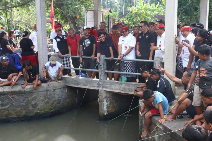 TABANAN, MediaBaliNews – Wujudkan Kabupaten Tabanan yang Aman Unggul dan Madani (AUM) melibatkan seluruh elemen masyarakat, khususnya di kalangan para pemuda, Bupati Tabanan, Dr. I Komang Gede Sanjaya, S.E.,M.M, senantiasa berikan dukungan terhadap kreativitas pemuda Tabanan. Salah satunya ditunjukkan melalui kehadirannya membuka pelaksanaan lomba mancing air deras oleh Sekaa Truna (ST) Jati Laksana, Desa Pejaten di aliran sungai Beji Penimbungan Timur Kantor Perbekel Pejaten, Kecamatan Kediri, Minggu, (21/4).