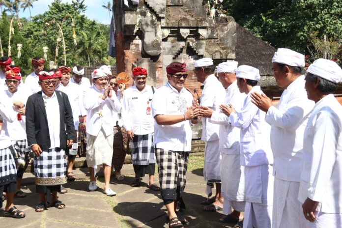 TABANAN, MediaBaliNews – Tingkatkan Sradha Bhakti, Bupati Tabanan, I Komang Gede Sanjaya, menghadiri sekaligus melaksanakan Persembahyangan Upacara Pujawali Piodalan Ida Bhatara ring Pura Luhur Besikalung Jajar Kemiri Kahyangan Jagat Bali Luhur Batukau, Desa Babahan serta melaksanakan Persembahyangan Karya Pemelaspasan Ratu Nyoman, Dalem Sugih lan Bale Pamuja ngelanturang Pujawali ring Kahyangan Jagat Pura Luhur Batu Lumbung (Gedong Simpen Merta Sedana), Desa Adat Soka, Desa Senganan, Kecamatan Penebel, Tabanan, Jumat, (19/7).