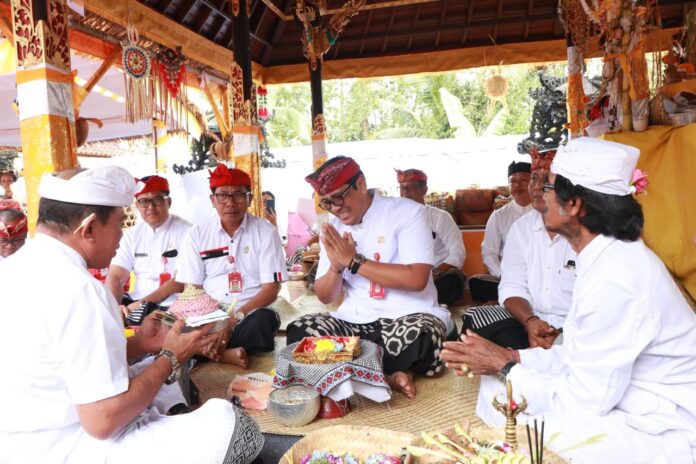 Setibanya di lokasi, Bupati Sanjaya yang saat itu didampingi oleh Sekda dan Para Kepala OPD terkait di lingkungan Pemkab Tabanan langsung menuju bale pesandekan dan mengikuti prosesi mendem pedagingan di Palinggih Padmasana Pura setempat. Selanjutnya rombongan mengikuti persembahyangan bersama dengan khusyuk dan damai.