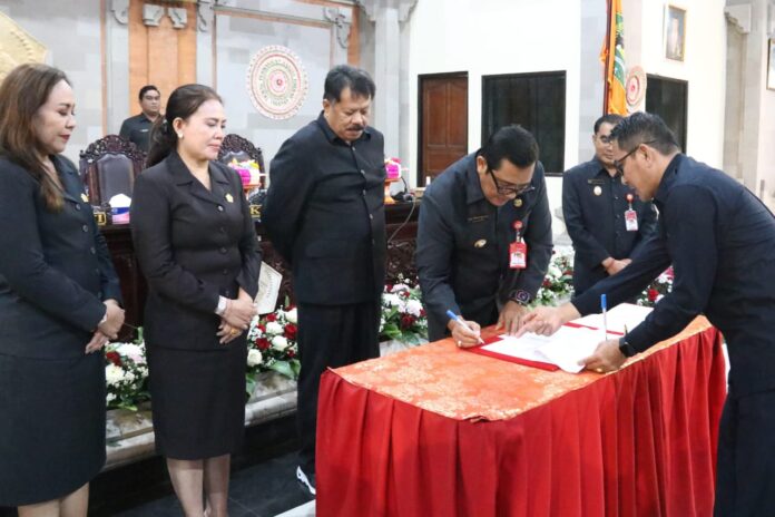 TABANAN, MediaBaliNews – Bupati Tabanan, Dr. I Komang Gede Sanjaya.,S.E.,M.M hadiri Rapat Paripurna Ke-7 Masa Persidangan II Tahun Sidang 2024 terkait Kesepakatan Bersama Kebijakan Umum Anggaran (KUA) dan Prioritas Plafon Anggaran Sementara (PPAS) Tahun Anggaran 2025 serta Kesepakatan Bersama Perubahan Kebijakan Umum Anggaran (KUA) dan Perubahan Prioritas Plafon Anggaran Sementara (PPAS) Tahun Anggaran 2024 yang berlangsung di Ruang Rapat DPRD Kabupaten Tabanan, Rabu (31/7).