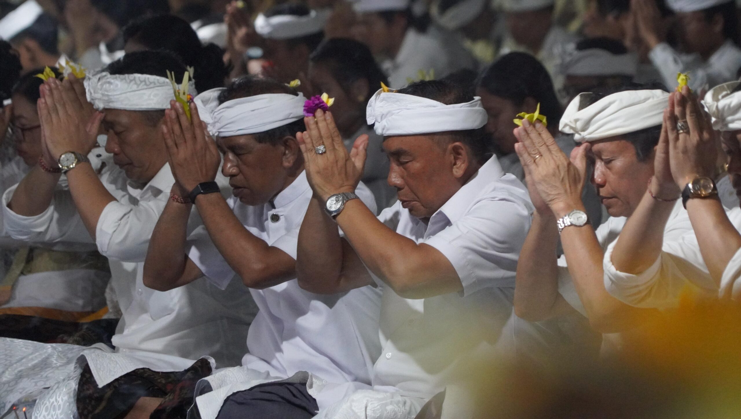 Persembahyangan yang dipimpin oleh Ida Sri Begawan Jaya Waringin, Griya Taman Ayu Waringin, Mendoyo Dangin Tukad ini dihadiri oleh Sekda Jembrana, Para Asisten Sekda Ketua PHDI Kabupaten Jembrana, beserta seluruh kepala OPD Pemkab Jembrana.