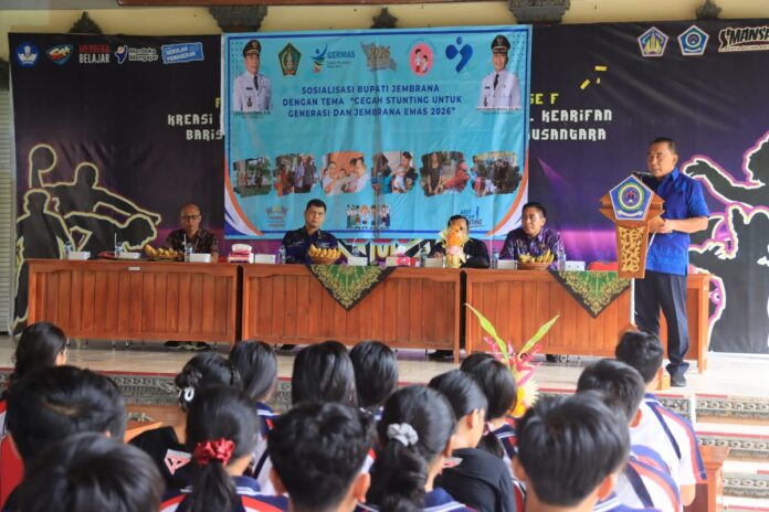 Bupati Jembrana I Nengah Tamba menjadi Narasumber Sosialisasi yang bertemakan ” Cegah Stunting Untuk Generasi dan Jembrana Emas 2026 ” bertempat di Aula SMAN 1 Melaya, Selasa (5/12).