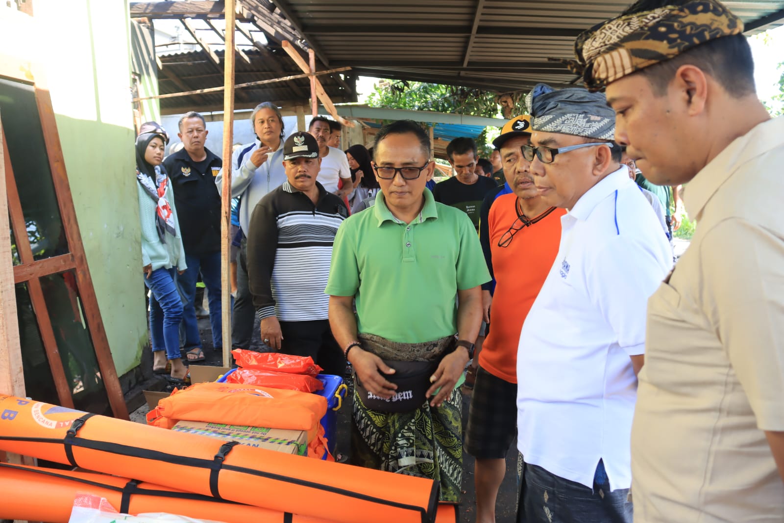 Bersama Kepala Pelaksana BPBD Jembrana, Bupati Tamba serahkan bantuan kebutuhan dasar dan paket sembako kepada korban.
