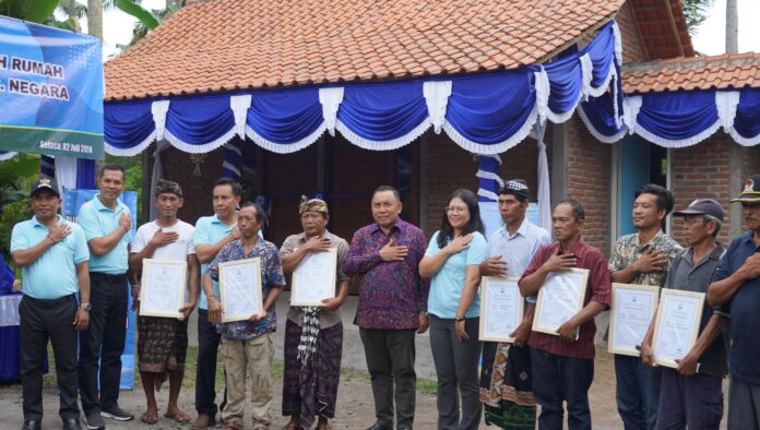 Penyerahan dipusatkan di salah satu rumah penerima bantuan, I Putu Diarsa di Banjar Peh, Desa Kaliakah, kecamatan Negara, Selasa (2/7).