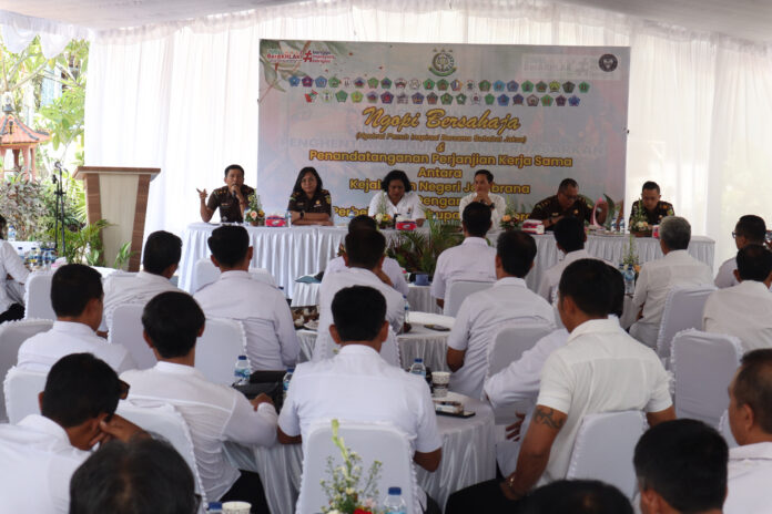 JEMBRANA, MediaBaliNews – Sebagai langkah mencegah adanya berbagai permasalahan hukum di tingkat desa, Kejaksaan Negeri (Kejari) Jembrana menggelar Ngopi Bersahaja (Ngobrol Penuh Inspirasi Bersama Sahabat Jaksa) dengan mengajak seluruh perangkat desa dan Camat se Jembrana, yang berlangsung di Kantor Kejari Jembrana, Kecamatan Negara, Kabupaten Jembrana, Rabu (8/11).