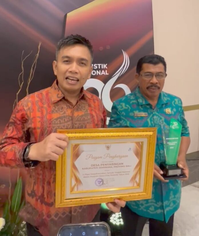 JEMBRANA, MediaBaliNews – Desa Penyaringan, Kecamatan Mendoyo, berhasil masuk dalam tiga besar Desa Terbaik dan menerima penghargaan sebagai Desa Cinta Statistik (Cantik) Terbaik dari Badan Pusat Statistik Republik Indonesia (BPS RI).