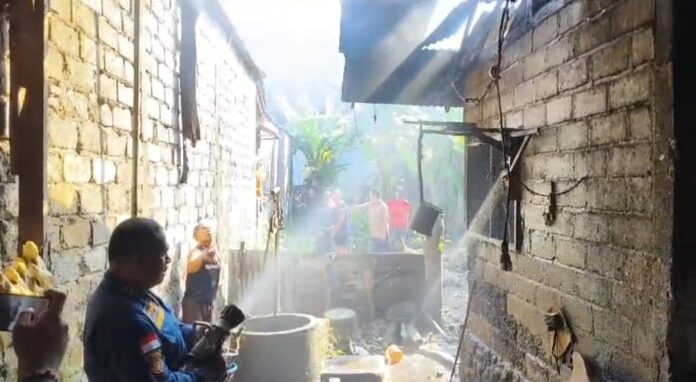 “Pemilik langsung lari menuju dapur berupaya memadamkan api dibantu oleh warga menggunakan air keran, namun api tetap membesar, ” terangnya.