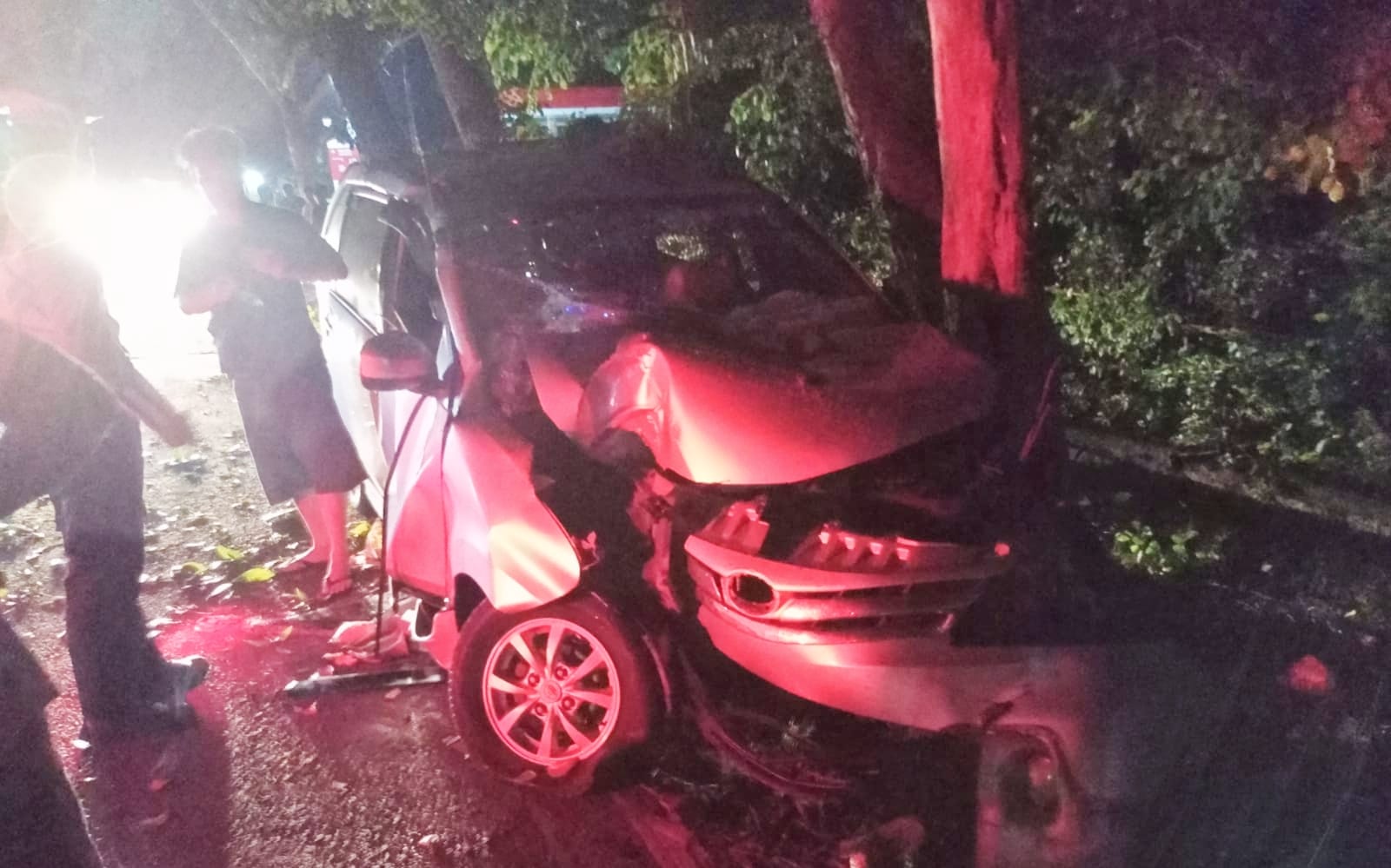 JEMBRANA, MediaBaliNews – Diduga mengantuk, mobil mini bus berpenumpang 4 orang menghantam pohon perindang di Banjar Tirta Kesuma, Desa Candikusuma, Kecamatan Melaya, Kabupaten Jembrana, Senin dini hari (19/12/2022). Beruntung tidak ada korban jiwa, namun sejumlah penumpang mengalami luka-luka ringan, dua diantaranya bocah.