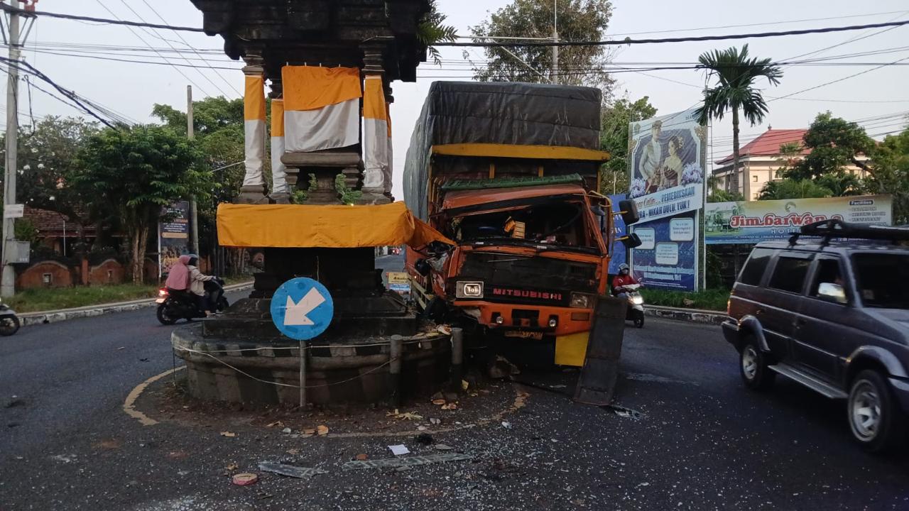 JEMBRANA, MediaBaliNews – Diduga akibat mengantuk, sebuah kendaraan truk hantam tugu Balang Tamak Negara, tepatnya di Jalan Raya Denpasar-Gilimanuk KM 95-96 Kelurahan Banjar Tengah, Kecamatan Negara, Kabupaten Jembrana, Jumat (2/5/2025).