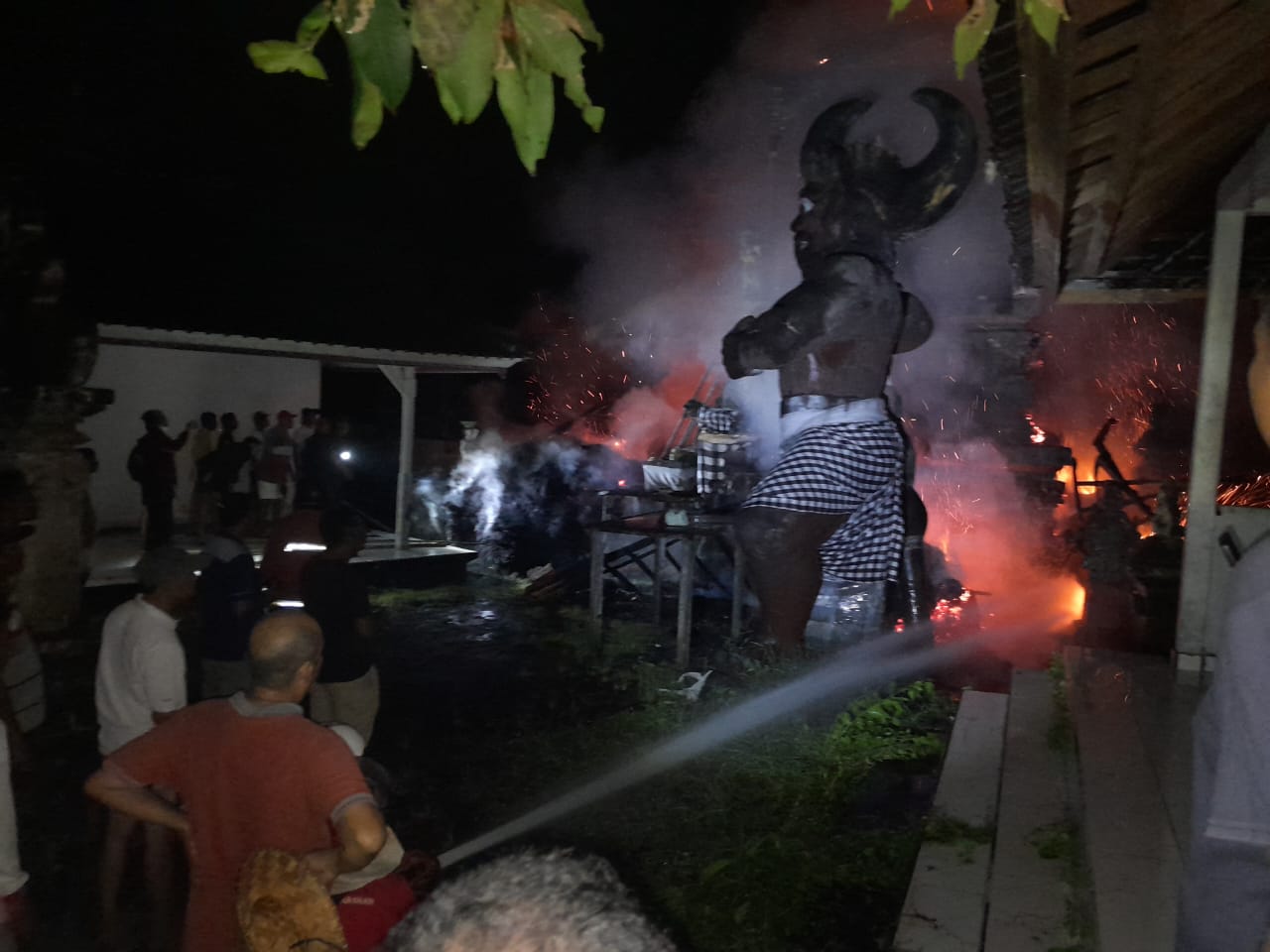 Melihat kejadian tersebut, saksi langsung menghubungi pemadam kebakaran serta memberitahukan kepada pemangku Pura Bima.