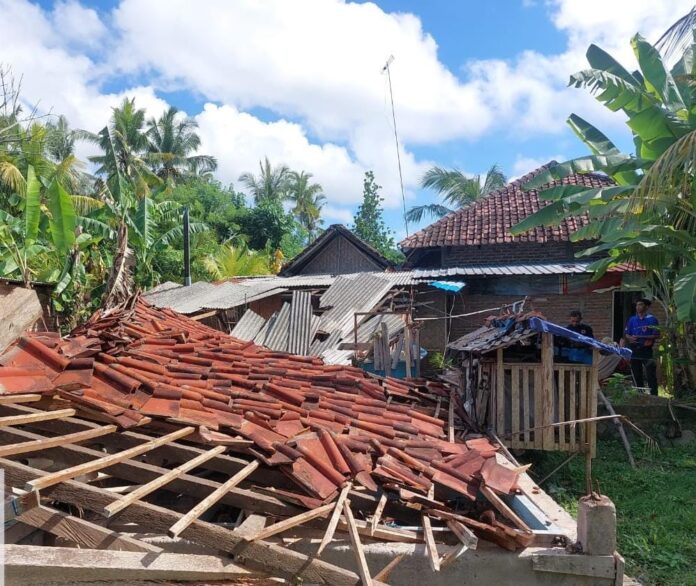 JEMBRANA, MediaBaliNews – Akibat dilanda hujan dengan intensitas tinggi yang disertai angin kencang, bangunan rumah semi permanen milik warga Banjar Kembangsari, Desa Cupel, Kecamatan Negara, Kabupaten Jembrana, ambruk pada Rabu malam (7/2).
