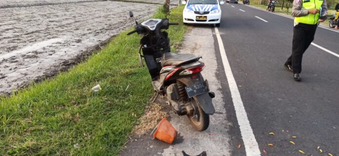 Peristiwa tersebut terjadi di jalan umum pedesaan tepatnya di Banjar Dauh Marga, Desa Delod Berawah, Jumat (2/6). Kendaraan motor yang terlibat kecelakaan, yakni motor Honda Vario nopol DK 5304 ZD dikendarai NKN (66) asal Desa Delod Berawah.