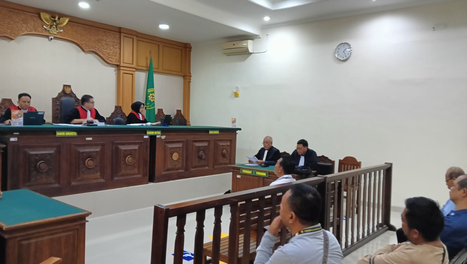 Agenda kali ini berfokus pada pembacaan eksepsi dari tim penasihat hukum terdakwa, yang menyoroti keabsahan kedudukan pelapor dalam perkara tersebut.