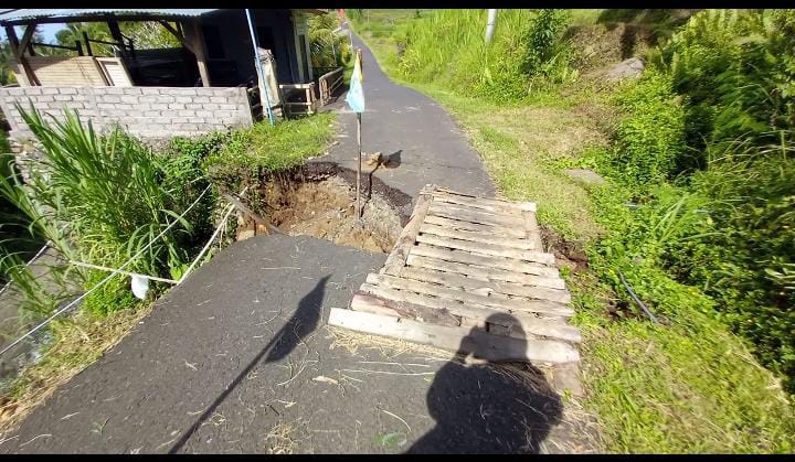 Sementara, Kelian Banjar Pengajaran Kaler, Putu Karang menjelaskan bahwa jalan tersebut jebol akibat adanya bencana alam.
