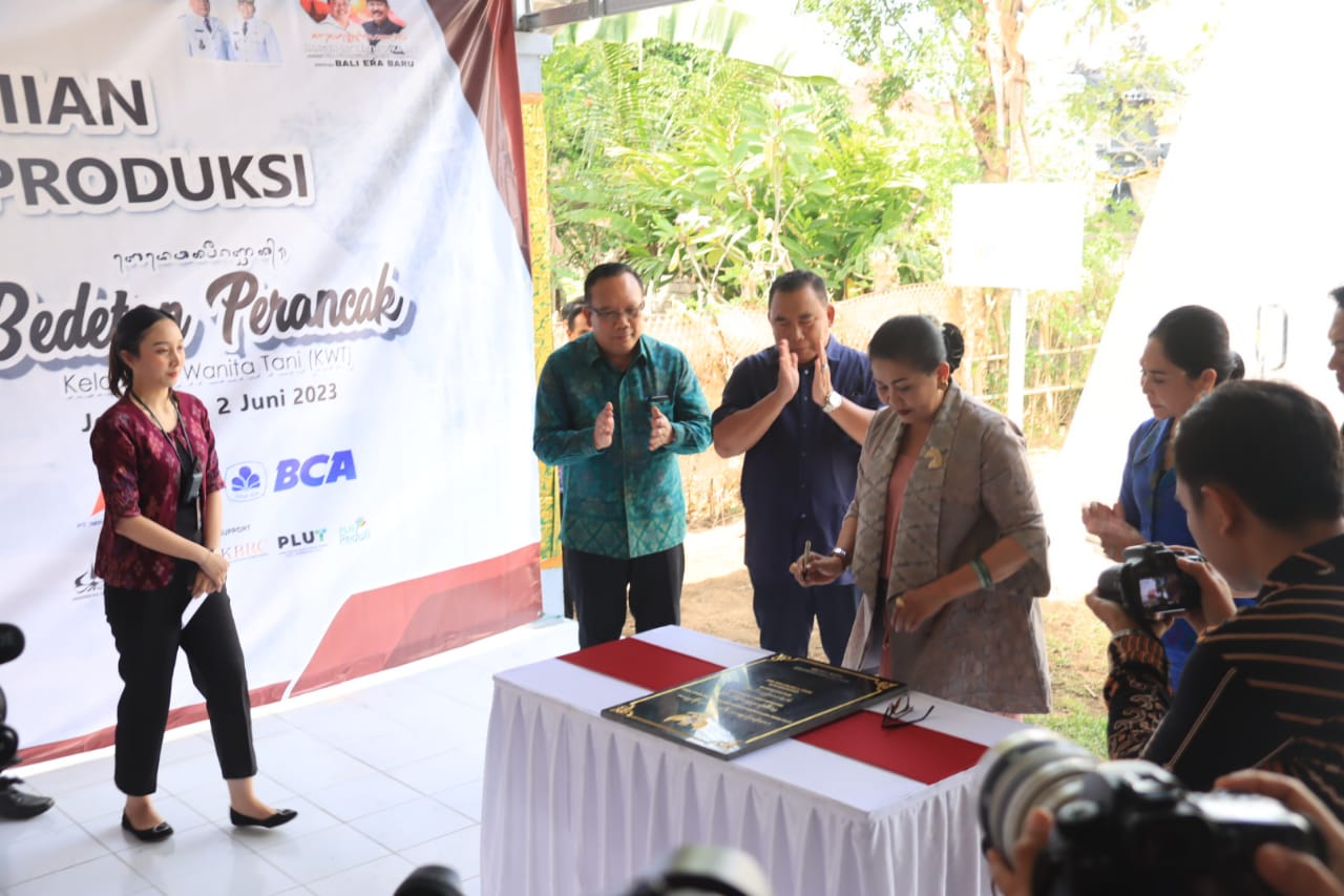 Bentuk perhatian tersebut diwujudkan dengan Peresmian Kawasan Produksi Kelompok Wanita Tani (KWT) oleh Ketua Tim Penggerak PKK Provinsi Bali Ny. Putri Koster yang didampingi Bupati Jembrana I Nengah Tamba beserta Ny. Candrawati Tamba yang juga Ketua Tim Penggerak PKK Kabupaten Jembrana. Jum’at (2/6) ditandai dengan penandatanganan prasasti Fasilitas Produksi Bedetan Perancak.