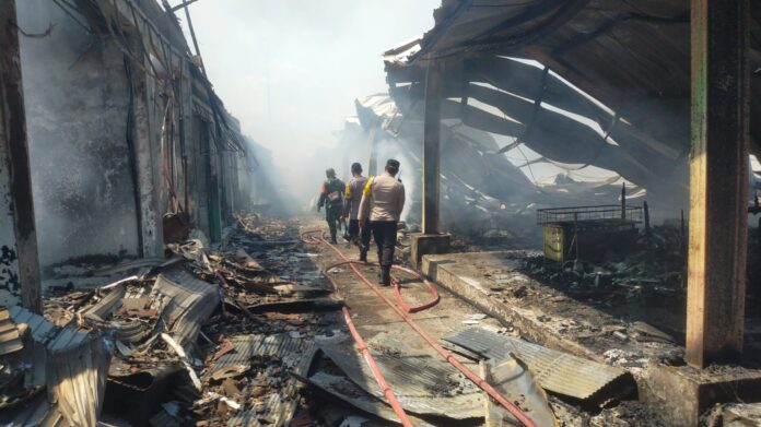 TABANAN, MediaBaliNews – Kebakaran melanda Pasar Tradisional Sri Bantas, Br. Batan Duren, Ds. Cepaka, Kec. Kediri, Kab. Tabanan pada Rabu (6/11) siang sekira pukul 12.30 WITA. Api dengan cepat membesar dan menghanguskan bangunan utama pasar, mengakibatkan kerugian materiil ditaksir mencapai Rp 8.000.000.000,- (delapan miliar rupiah).