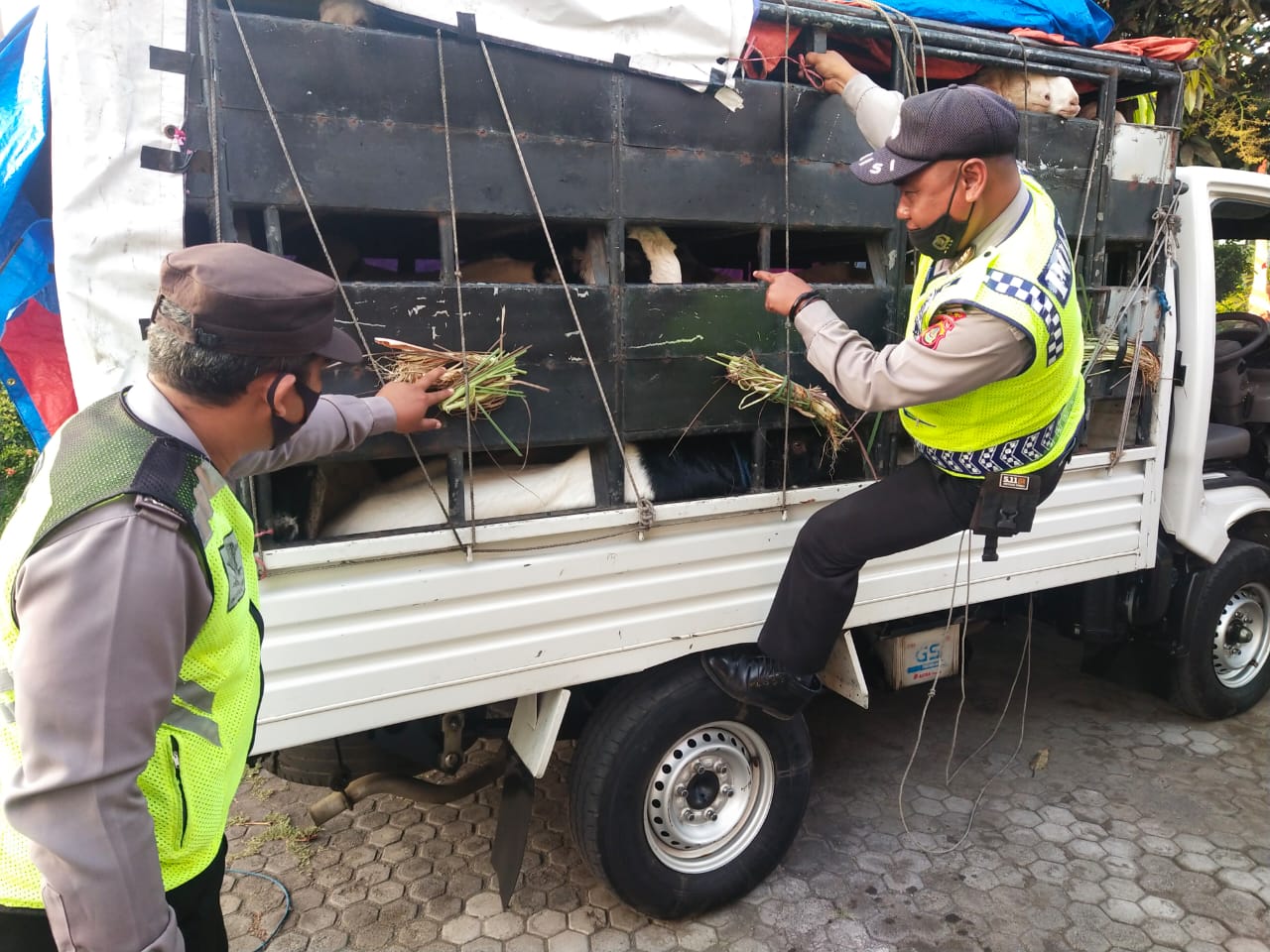 Pengiriman sebanyak 38 ekor kambing berhasil digagalkan petugas saat turun dari pelabuhan Gilimanuk. Sejumlah ternak rentan PMK itu diangkut menggunkan mobil Pickup Isuzu Traga Warna Putih NoPol S 9206 AE dan ditutup dengan terpal berwarna biru. Setelah dilakukan pengecekan ternyata ternak kambing itu tanpa dokumen (bodong).