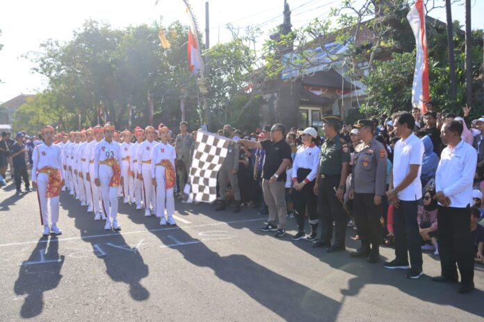 Peserta lomba gerak jalan dilepas langsung oleh Bupati Jembrana I Nengah Tamba didampingi istri, Forkopimda serta Sekda yang mengambil start di depan Kantor Bupati Jembrana, Selasa (8/8).