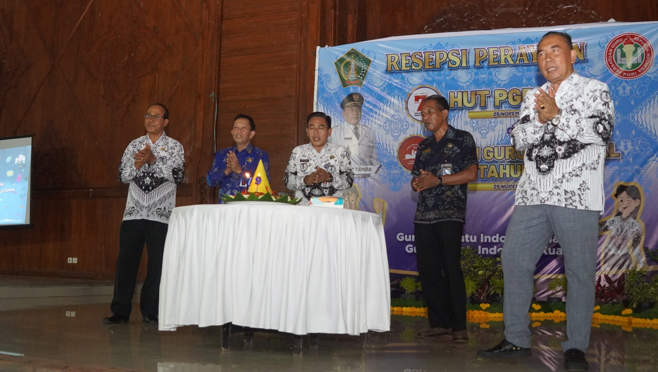 Mengambil tema “Guru Bermutu Indonesia Maju, Guru Hebat Indonesia Kuat” Resepsi Perayaan Hut PGRI ke-79 dan Hari Guru Nasional tahun 2024 Kabupaten Jembrana diisi dengan pemotongan tumpeng dan penyerahan piagam penghargaan atas prestasi guru yang diraih pada Jambore Guru dan Tenaga Kependidikan (GTK) Hebat Tahun 2024.