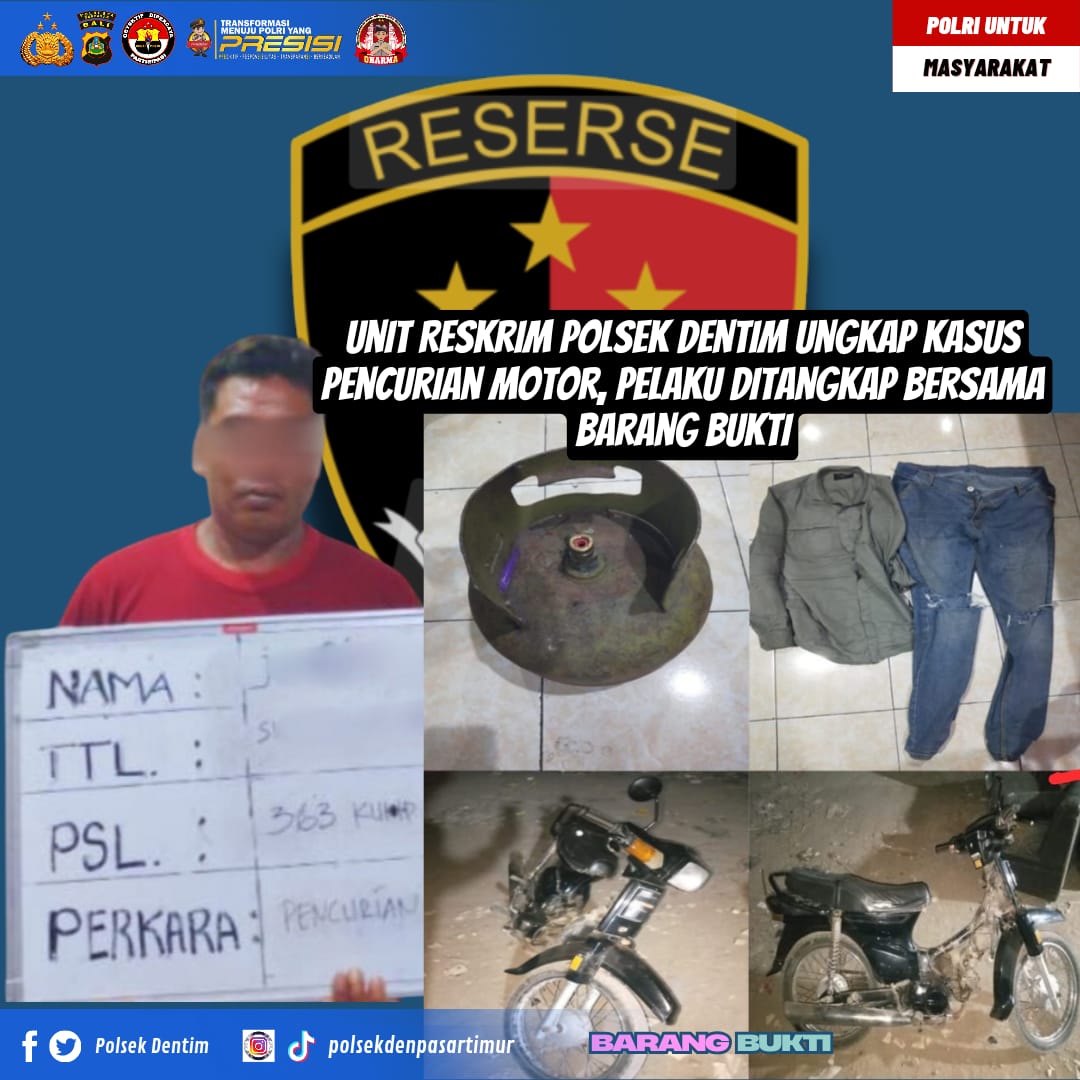DENPASAR, MediaBaliNews – Seorang pria berinisial J (39) ditangkap oleh Polsek Denpasar Timur. J diringkus setelah diduga mencuri motor Honda Prima milik korban di Denpasar Timur. Motor yang raib itu diparkir dengan kunci yang masih menggantung. Penangkapan berhasil dilakukan berkat petunjuk dari rekaman kamera pengawas atau CCTV.
