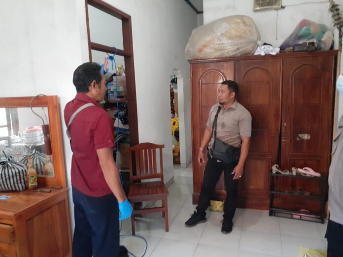 Saat itu, sekitar pukul 07.30 Wita istri korban keluar dari kamar dan melihat suaminya sudah dalam kondisi tergantung pada kusen pintu kamar sebelah utara.