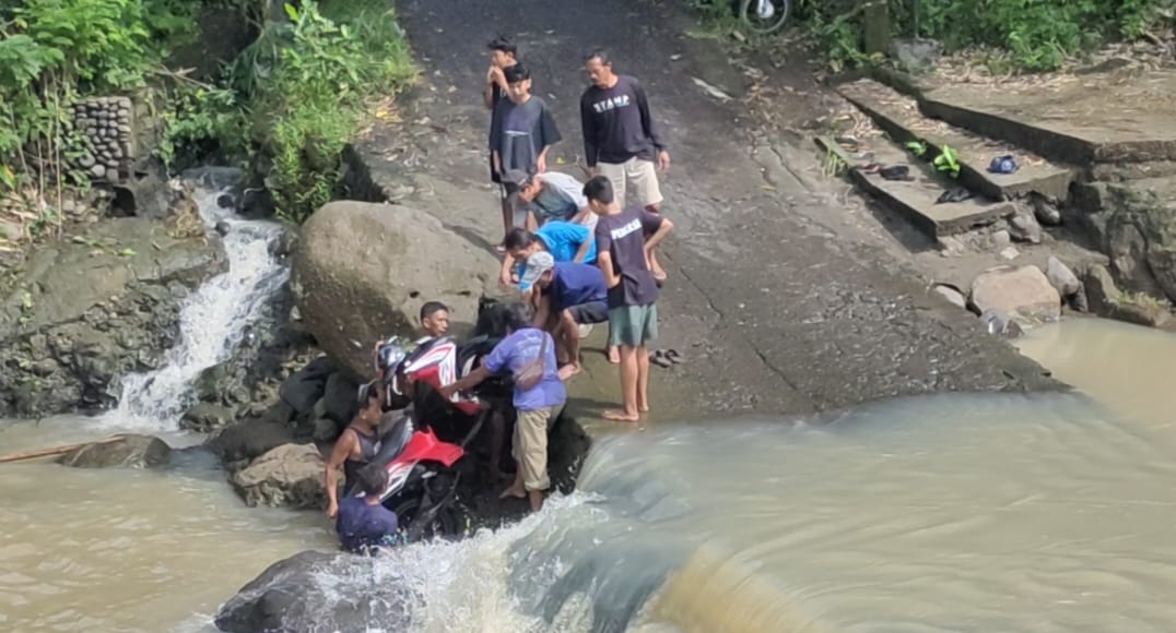 Alhasil saat di tengah perjalanan, tiba-tiba motornya mati dan arus sungai semakin deras hingga dirinya bersama sepeda motor hanyut terbawa arus.