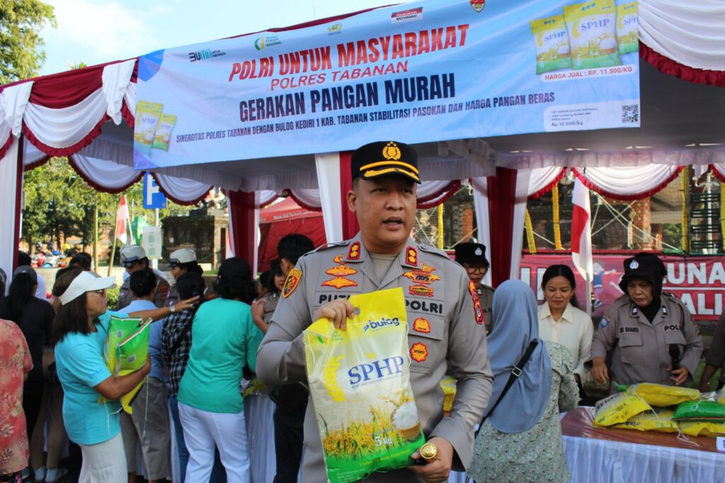 Di sisi lain, Polres Tabanan bersinergi dengan Bulog Kediri I Kabupaten Tabanan menggelar kegiatan pangan murah. Acara ini berlangsung di halaman parkir Gedung I Maria Tabanan, Selasa (12/8/2025). Kegiatan ini bertujuan menstabilkan pasokan dan harga pangan. Polisi menyalurkan beras SPHP kepada masyarakat.