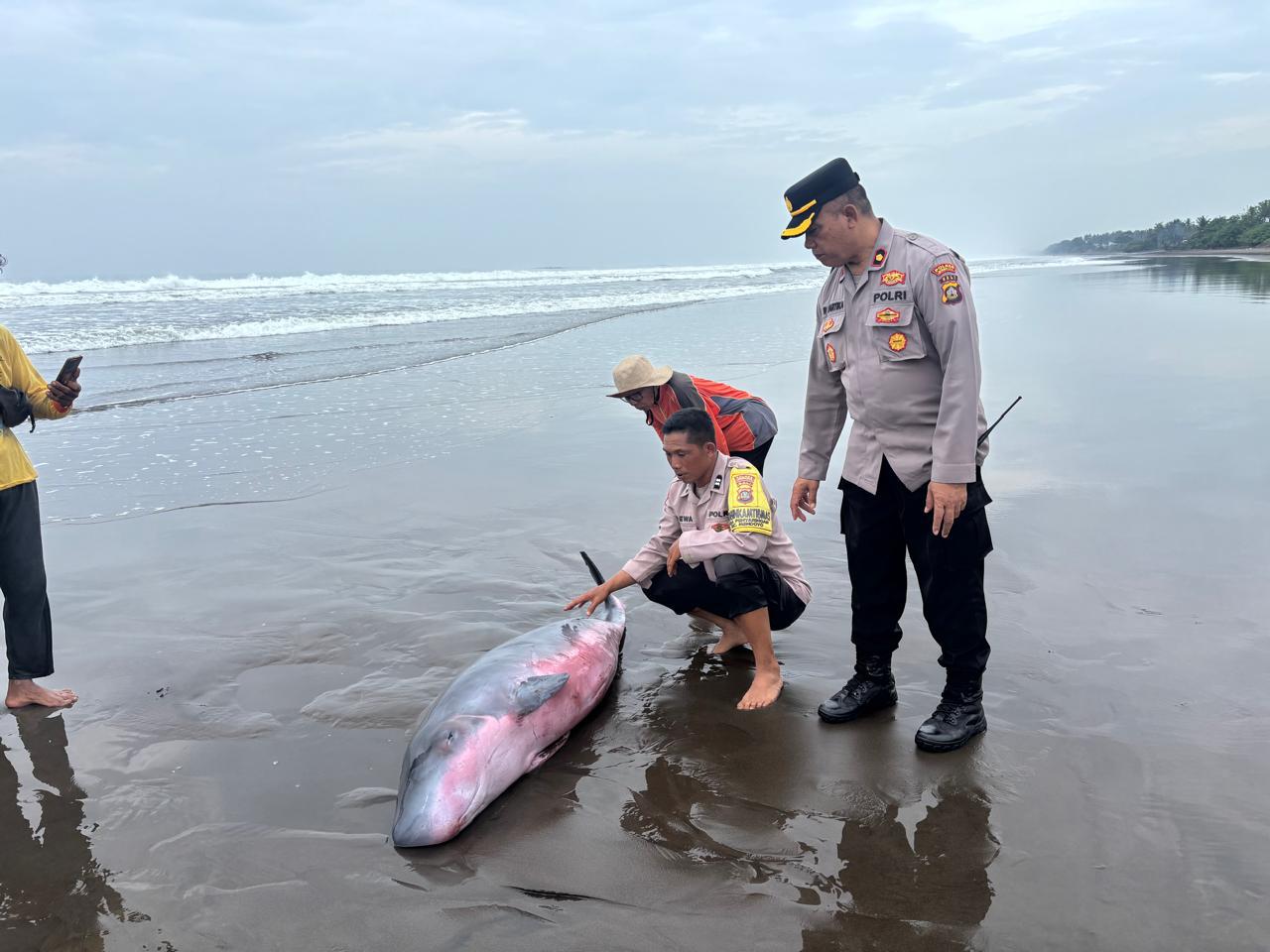 Mengetahui hal tersebut, aparat kepolisian mengamankan lokasi sekaligus berkoordinasi dengan instansi terkait guna memastikan langkah penanganan sesuai dengan prosedur konservasi satwa laut.