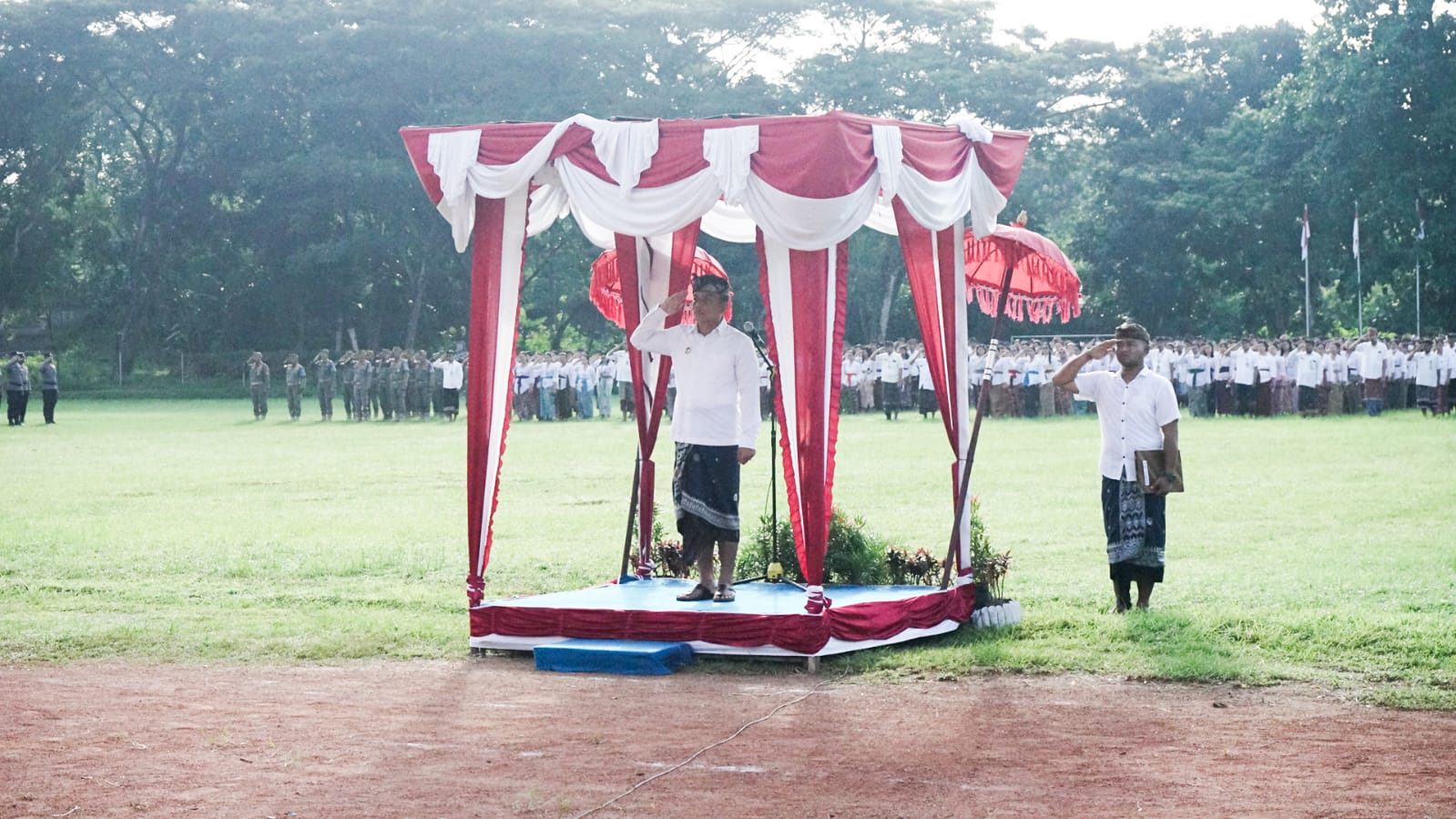 Upacara yang mengusung tema Bergerak Bersama, Lanjutkan Merdeka Belajar tersebut, dipimpin Wakil Bupati Jembrana, I Gede Ngurah Patriana Krisna.