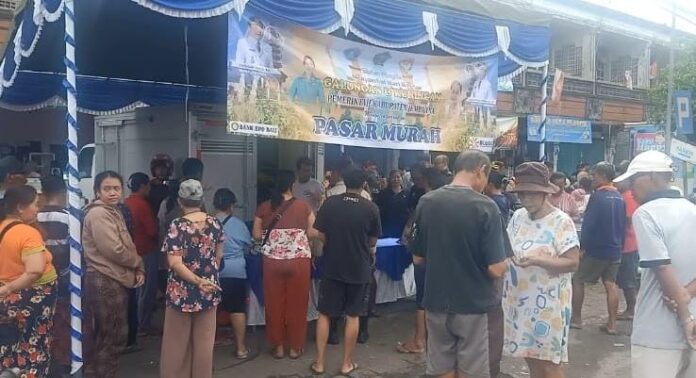 JEMBRANA, MediaBaliNews – Pemerintah Kabupaten (Pemkab) Jembrana kembali gelar pasar murah tepatnya di Pasar Umum Tegalcangkring, Kecamatan Mendoyo, Jembrana. Dalam kurun waktu kurang dari 2 jam paket sembako yang disediakan ludes diserbu warga, Kamis (7/3).