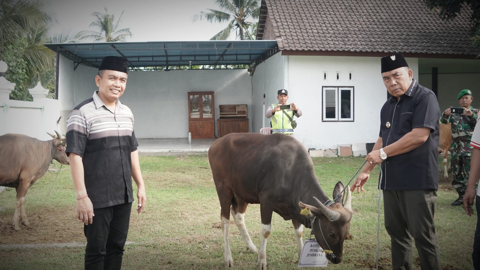 Secara simbolis bupati menyerahkan hewan kurban kepada warga di tiga titik yakni Masjid Raya Dauhwaru Jembrana, Masjid Nurul Hidayah Pengambengan, dan Masjid Al Iqrom Tegalbadeng Barat.