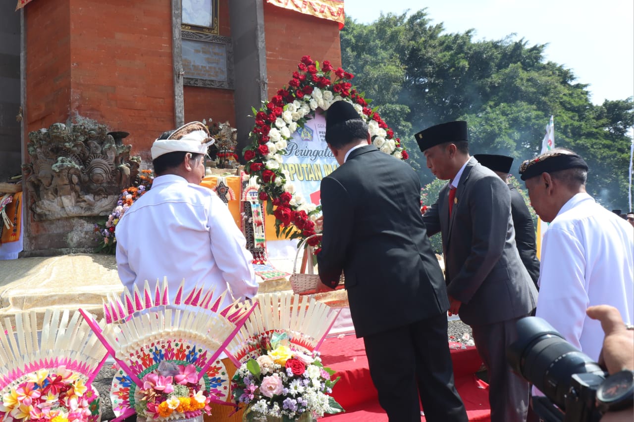 “Sebagai penghargaan atas hal itu, kita memperingati Puputan Margarana setiap tahunnya. Upacara peringatan yang bukan hanya sebagai ungkapan rasa syukur kepada Ida Sang Hyang Widhi Wasa /Tuhan Yang Maha Esa atas kemerdekaan yang kita nikmati, juga sekaligus sebagai refleksi terhadap jati diri sebagai bangsa bermartabat yang dilahirkan oleh para pejuang,” papar Dewa Made Indra membacakan sambutan PJ. Gubernur pagi itu.