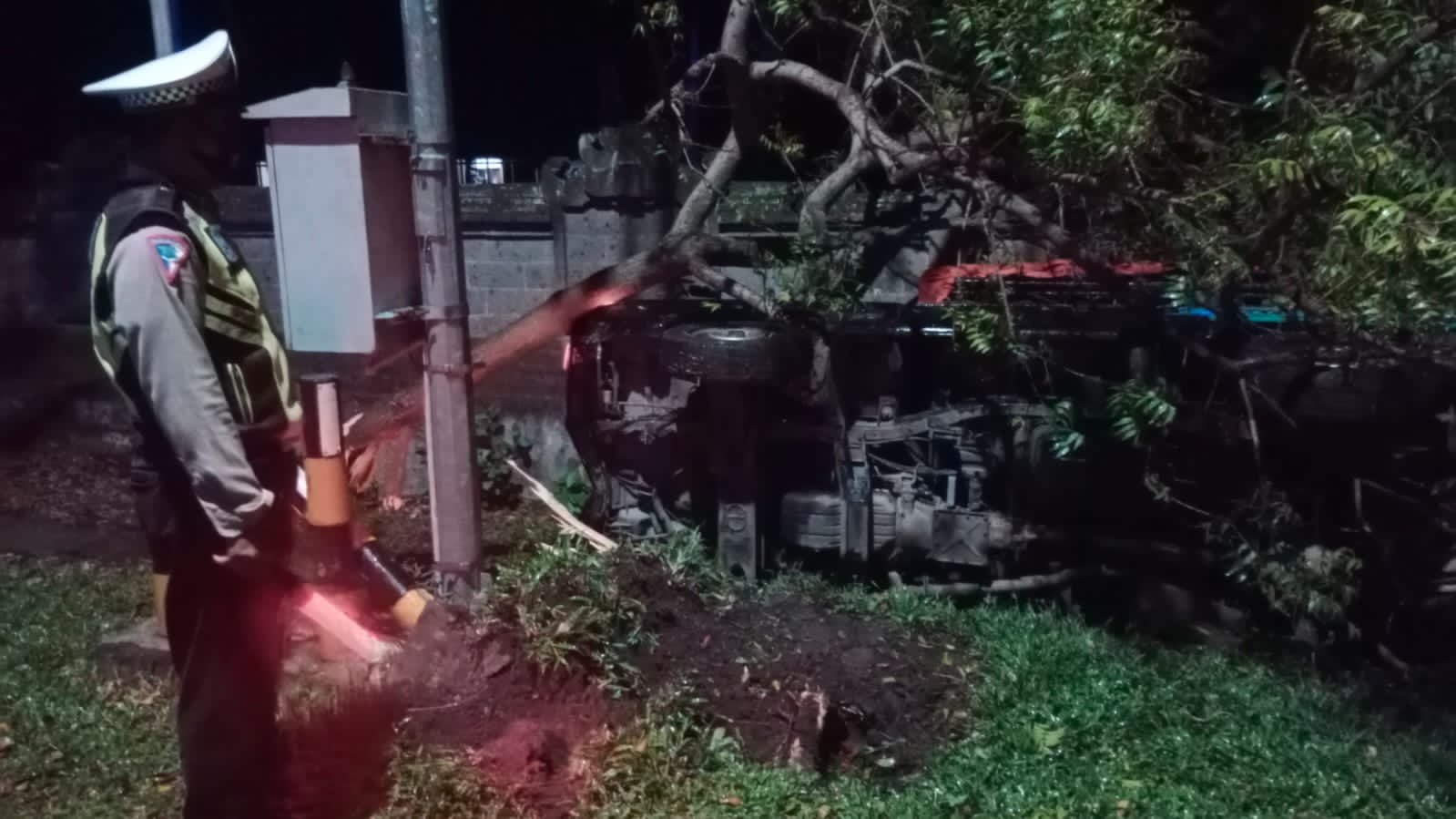 “Akibat lakalantas tersebut, kendaraan Pickup oleng ke kiri menabrak pohon perindang disisi kiri jalan dan terperosok ke dalam got. Untuk kendaraan sepeda motor honda vario mengalami rusak berat (ringsek). Sementara seluruh korban lakalantarls tersebut sudah dilarikan ke fasilitas kesehatan terdekat untuk mendapatkan perawatan lebih lanjut,” pungkas AKP Aan. (jar/war/mbn)