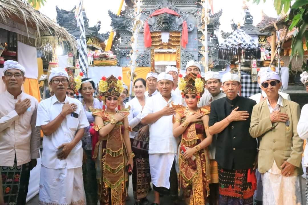 JEMBRANA, MediaBaliNews – Keluarga pengempon Merajan Gede Dalem Sekar Satria Taman Bali Mahagotra Tirta Harum Jembrana yang terletak di Banjar Anyar, Desa Batuagung, Kecamatan Jembrana, Jembrana menggelar Upacara Pedudusan Alit, Ngenteg Linggih, Mupuk Pedagingan, Wrespati Kalpa di Merajan Gede Dalem Sekar Satria Taman Bali Mahagotra Tirta Harum Jembrana yang puncaknya dilaksanakan pada Buda, Umanis, Medangingsia (20/03/2024).