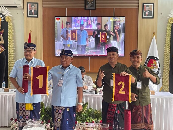 JEMBRANA, MediaBaliNews – Usai menetapkan pasangan calon Bupati dan Wakil Bupati Jembrana, Komisi Pemilihan Umum (KPU) Kabupaten Jembrana akhirnya menggelar rapat pleno terbuka pengundian dan penetapan nomor urut pasangan calon, Senin (23/9/2024).