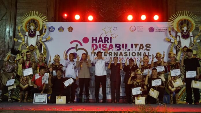 JEMBRANA, MediaBaliNews — Bupati Jembrana, I Made Kembang Hartawan menghadiri acara Peringatan Hari Disabilitas Internasional (HDI) yang diselenggarakan di Auditorium Kabupaten Jembrana. Kegiatan ini berlangsung hangat dan penuh semangat kebersamaan, diikuti oleh 197 siswa beserta orang tua, serta para penyandang disabilitas yang tergabung dalam berbagai organisasi, Rabu (10/12).