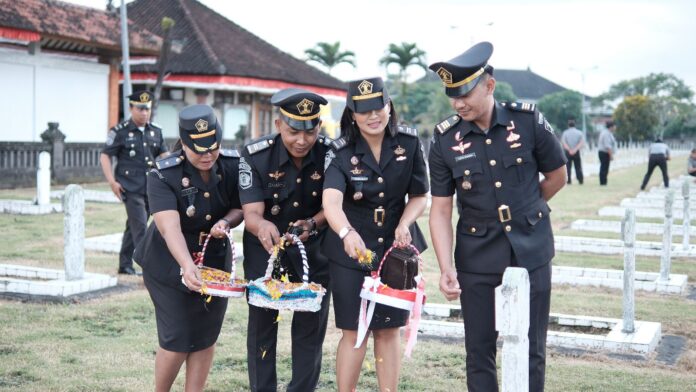 TABANAN, MediaBaliNews – Dalam rangka semarak Hari Pengayoman ke-79 serta menyambut Hari Kemerdekaan Republik Indonesia Tahun 2024, Jajaran Petugas Lembaga Pemasyarakatan (Lapas) Kelas IIB Tabanan serta Dharma Wanita Persatuan (DWP) mengikuti kegiatan Upacara Tabur Bunga dan Ziarah Makam di Taman Makam Pahlawan (TMP) Pancaka Tirta Tabanan, Jum’at (09/08/2024).