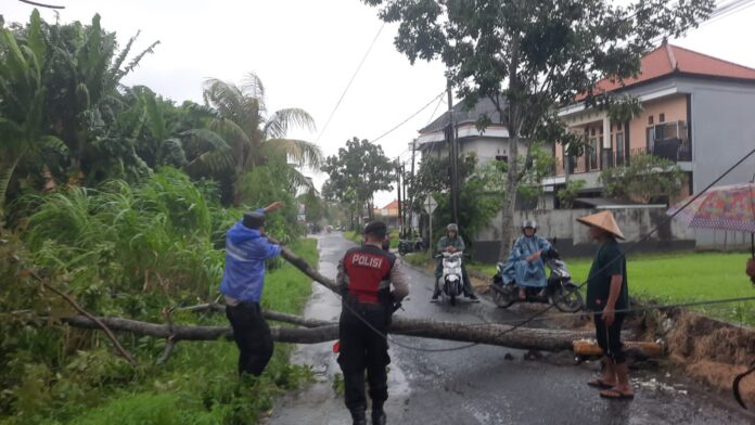 TABANAN, MediaBaliNews – Sebuah pohon mahoni tumbang di Jalan Kebo Iwa, Banjar Bongan Puseh, Desa Bongan, Kecamatan/Kabupaten Tabanan, pada Senin (10/2) sekitar pukul 16.30 WITA. Peristiwa ini terjadi akibat hujan lebat disertai angin kencang yang melanda wilayah tersebut.