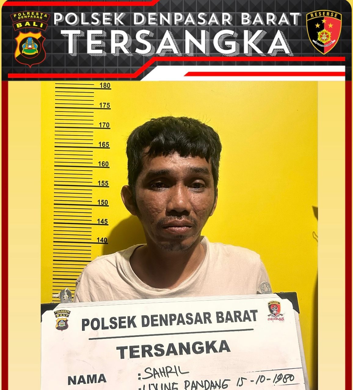 Pelaku, Sahril (44), berhasil ditangkap oleh Tim Opsnal Polsek Denpasar Barat yang dipimpin oleh Kanit Reskrim IPTU Dian Eka Ananta, Rabu 12 September 2024.