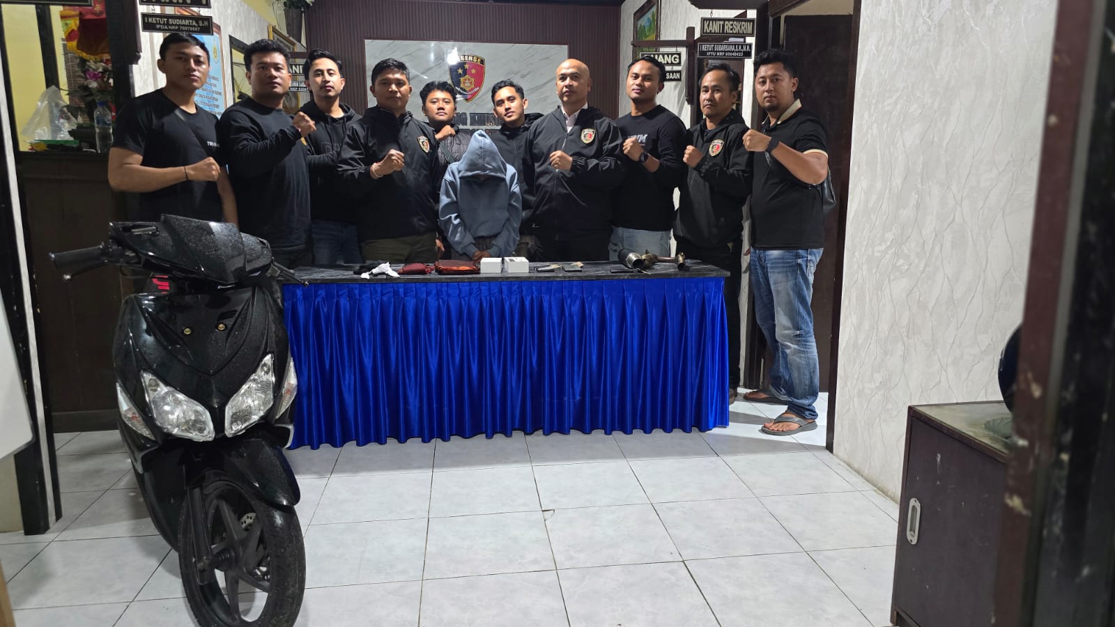 “Kami menyita kendaraan bermotor beserta perlengkapannya yang pelaku beli menggunakan uang hasil penjualan emas curian milik korban di Batukaang,” jelas Kompol Made Dwi Puja R mengenai pemanfaatan uang hasil kejahatan oleh sang pelaku.