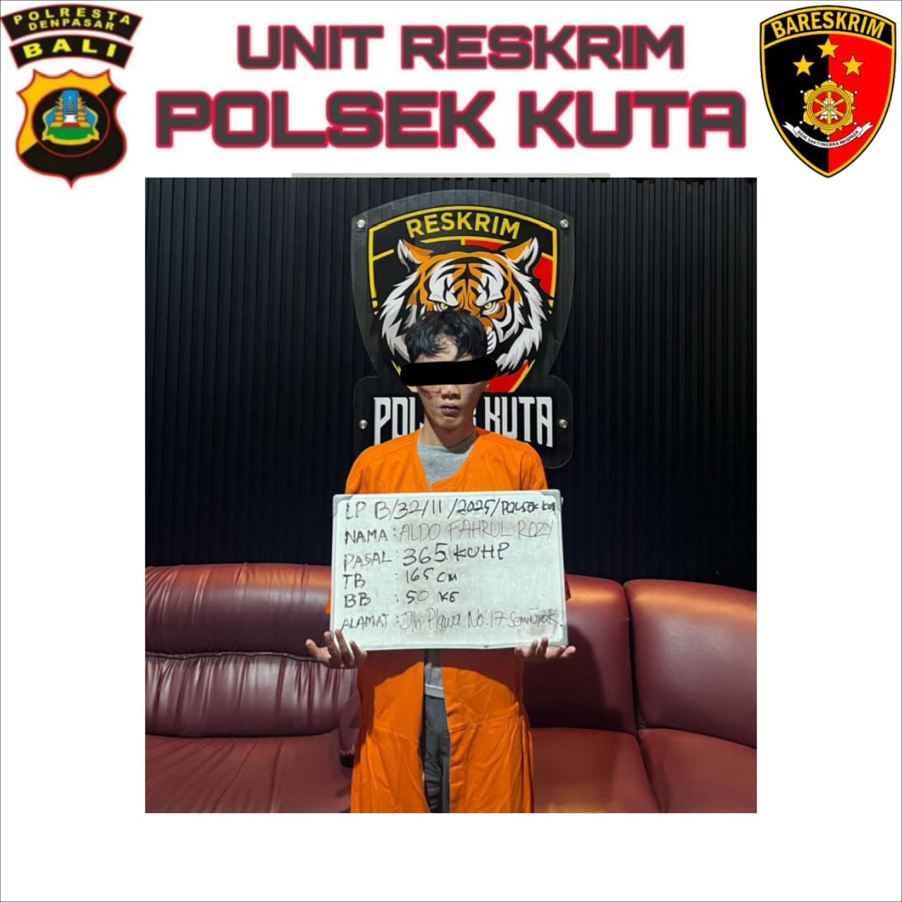 DENPASAR, MediaBaliNews – Unit Reskrim Polsek Kuta berhasil mengungkap kasus tindak pidana pencurian dengan kekerasan (curas) yang terjadi di salah satu hotel di Jalan Raya Kuta, Kabupaten Badung, Bali. Pelaku, yang diketahui bernama Aldo Fahrul Rozy Muhammad Wahid (25), asal Jakarta Selatan, diamankan kurang dari lima jam setelah kejadian.