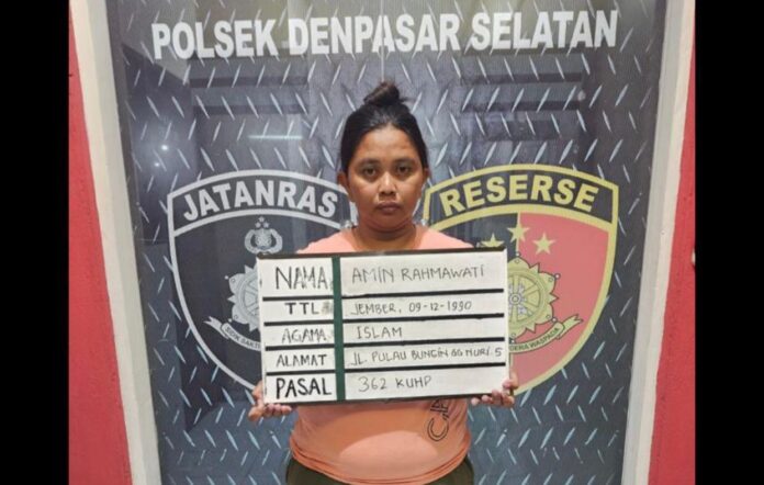 Kasi Humas Polresta Denpasar, AKP I Ketut Sukadi mengatakan, tim operasional Reskrim melakukan tindak penangkapan terhadap pelaku berdasarkan laporan dari masyarakat dan bukti-bukti yang ada di tempat kejadian. Identitas pelaku pencurian adalah AM, 23 tahun, seorang pembantu rumah tangga (PRT) yang tinggal di Jalan Pulau Bungin, Gang Nuri Banjar Pitik, Pedungan, Denpasar Selatan.
